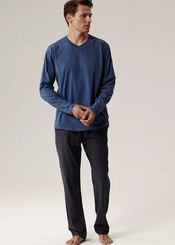 PIŻAMA ATLANTIC NMP-389 JZ25 NIEC/GRA kolor niebieski c.- granat, rozmiar XL