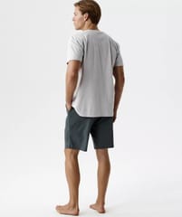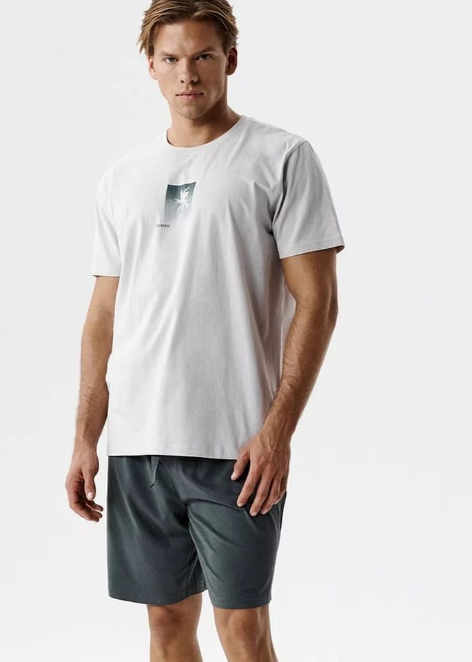 Piżama została wykonana z wysokiej jakości bawełny uszlachetnionej peach effect — miękkiej, lekkiej i przyjaznej dla skóry. T-shirt z krótkim rękawem oraz szorty z regulacją na sznurek i praktycznymi kieszeniami. Skład:100% bawełna.