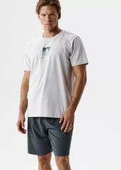 Piżama została wykonana z wysokiej jakości bawełny uszlachetnionej peach effect — miękkiej, lekkiej i przyjaznej dla skóry. T-shirt z krótkim rękawem oraz szorty z regulacją na sznurek i praktycznymi kieszeniami. Skład:100% bawełna.
