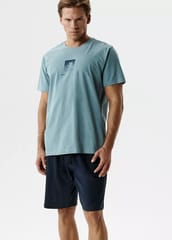 Piżama została wykonana z wysokiej jakości bawełny uszlachetnionej peach effect — miękkiej, lekkiej i przyjaznej dla skóry. T-shirt z krótkim rękawem oraz szorty z regulacją na sznurek i praktycznymi kieszeniami. Skład:100% bawełna.