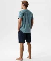 Piżama została wykonana z wysokiej jakości bawełny uszlachetnionej peach effect — miękkiej, lekkiej i przyjaznej dla skóry. T-shirt z krótkim rękawem oraz szorty z regulacją na sznurek i praktycznymi kieszeniami. Skład:100% bawełna.