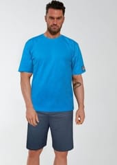 Piżama męska z wysokiej jakości oddychającej bawełny. Koszulka gładka z krótkim rękawem .W komplecie jednolite, krótkie spodenki. Luźny krój. Pakowana w woreczek foliowy. Skład: 100% bawełna.
