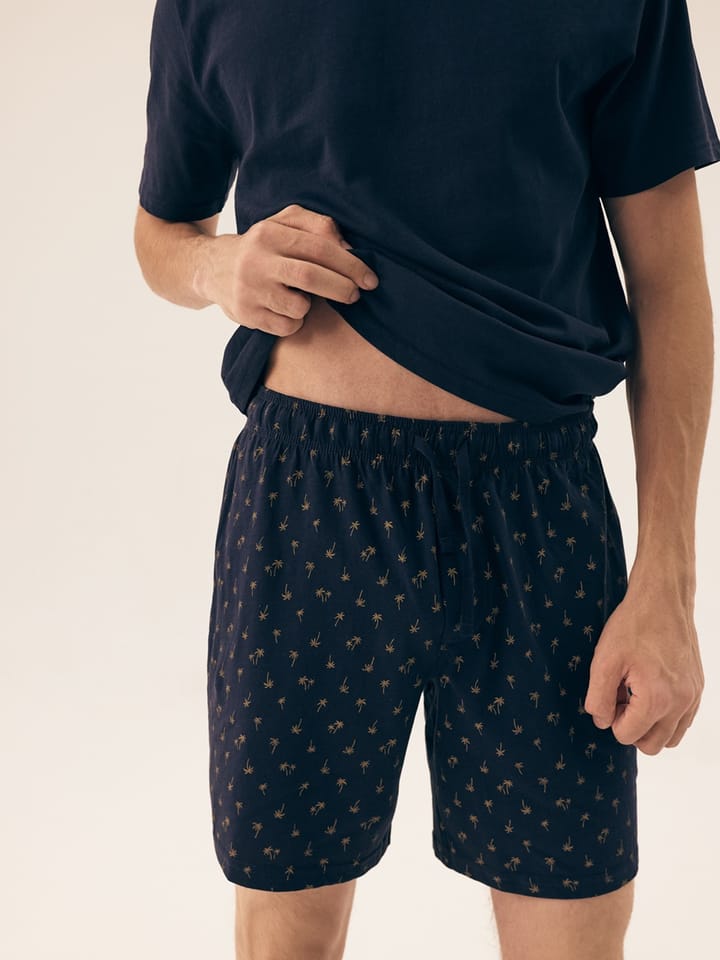 Piżama męska z wysokiej jakości bawełny. Koszulka z krótkim rękawem, jednolita. Spodenki krótkie, wzorzyste, w pasie gumka. Skład: 100% bawełna.