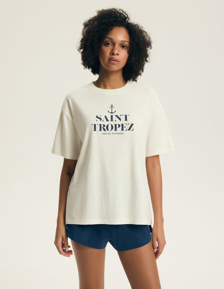 Piżama damska z wysokiej jakości bawełny. Koszulka z krótkim rękawem, półokrągłym dekoltem, luźna. Spodenki krótsze po bokach, luźne. Zestaw jest idealny na ciepłe noce, oferując pełną swobodę ruchów i komfort snu. Skład: 100% bawełna.