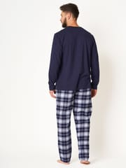 Piżama męska z bluzką z długim rękawem, w kratę,rozpinana ,na wysokości klatki piersiowej mała kieszonka. Długie spodnie z kieszeniami, wygodna komfortowa guma w pasie.