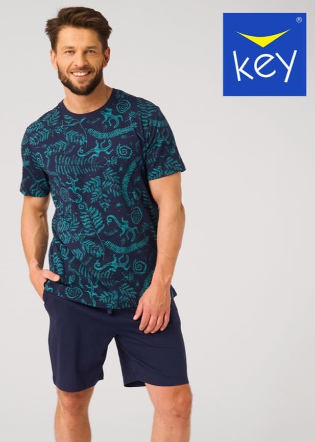 Piżama męska wykonana z wysokiej jakości bawełny zapewnia doskonałą przewiewność i komfort. Koszulka wzorzysta, z krótkim rękawem. Spodenki krótkie, gładkie z wygodnymi kieszeniami. Skład: 100% bawełna.