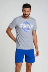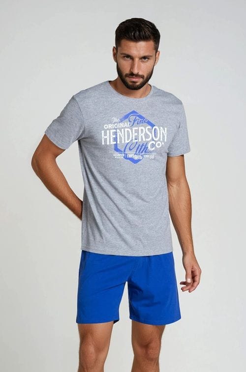Lars - to dwuczęściowa piżama w duecie szarość + niebieski, ze spodenkami do okolic kolan, z ponadczasowej linii Core, marki Henderson. Znajdziesz tu miękkie, przyjemne w dotyku tkaniny, wygodne kroje i nadruki, które dodają charakteru projektom. Skład: góra 90% bawełna, 10% wiskoza, dół 100% bawełna.