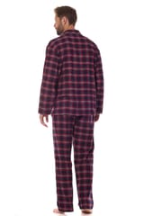 Piżama z miękkiej, ciepłej flaneli w kratę. Koszula z długim rękawem, kołnierzykiem, rozpinana. Spodnie z długą, prostą nogawką i praktycznymi kieszeniami po bokach. Skład: 100% bawełna.