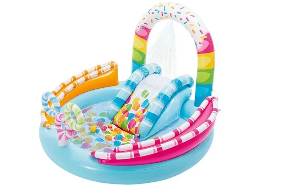 Dmuchana Kraina Cukierków nadaje się dla maluchów już powyżej 2 roku życia, ale zachwyci też starsze dzieci. Intex zadbał o to, żeby wszystkie dzieci mogły bezpiecznie spożytkować energie i cieszyć się wodną zabawą.
