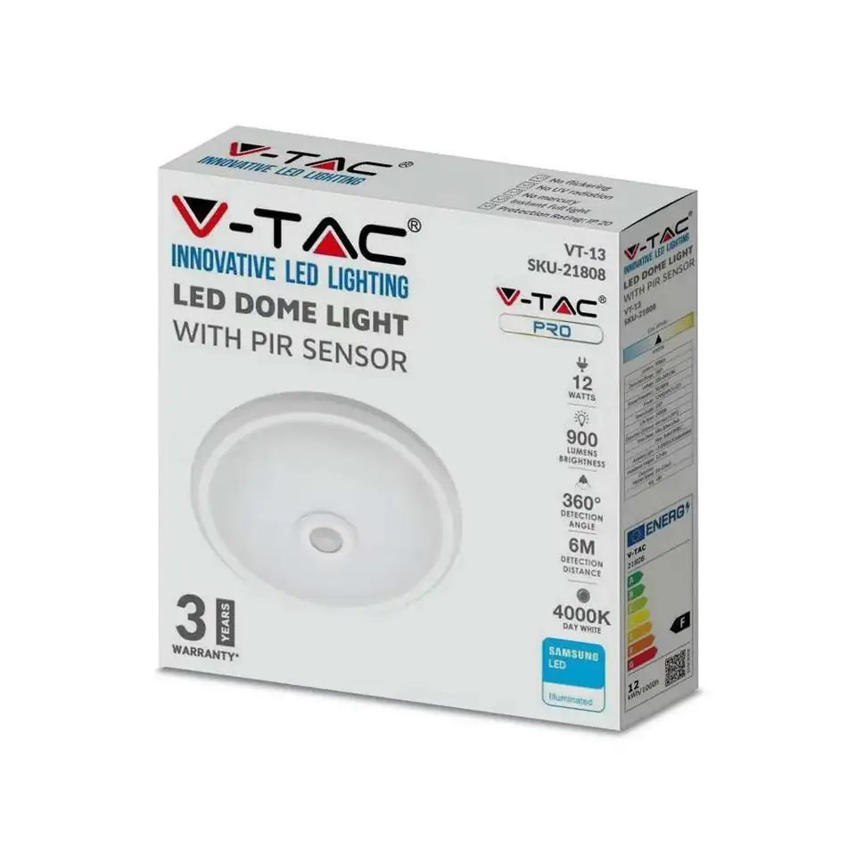 Plafon LED V-TAC SAMSUNG CHIP 12W Czujnik Ruchu VT-13 SKU21808 4000K 900lm 3 Lata Gwarancji