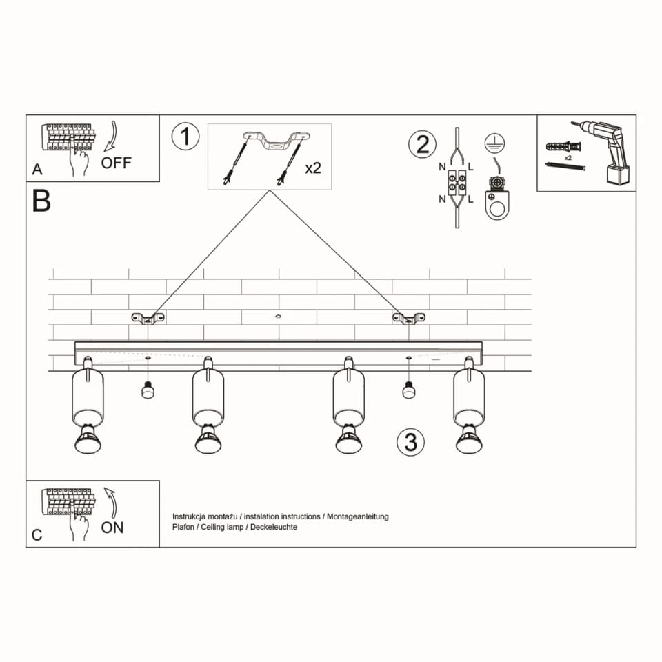 Zapomnij o uciążliwym montażu i omdlałych ramionach. Plafon sufitowy na 4 klosze zamontujesz szybko i z łatwością, więc wystarczy chwila, by zacząć cieszyć się jego blaskiem.