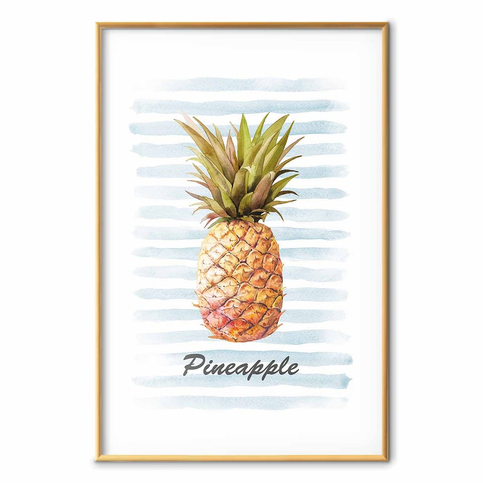 Plakat - Ananas i paski rozmiar 21x30, wykończenie Rama złota z marginesem