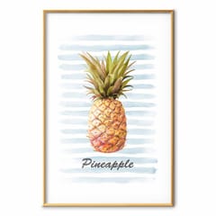 Plakat - Ananas i paski rozmiar 60x90, wykończenie Rama złota z marginesem