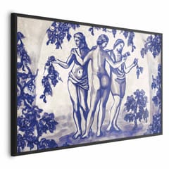 Plakat - Antyczna winnica - trzy kobiety w portalu malowane niebieskim tuszem rozmiar 60x40, wykończenie Rama czarna