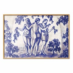 Plakat - Antyczna winnica - trzy kobiety w portalu malowane niebieskim tuszem rozmiar 90x60, wykończenie Rama złota