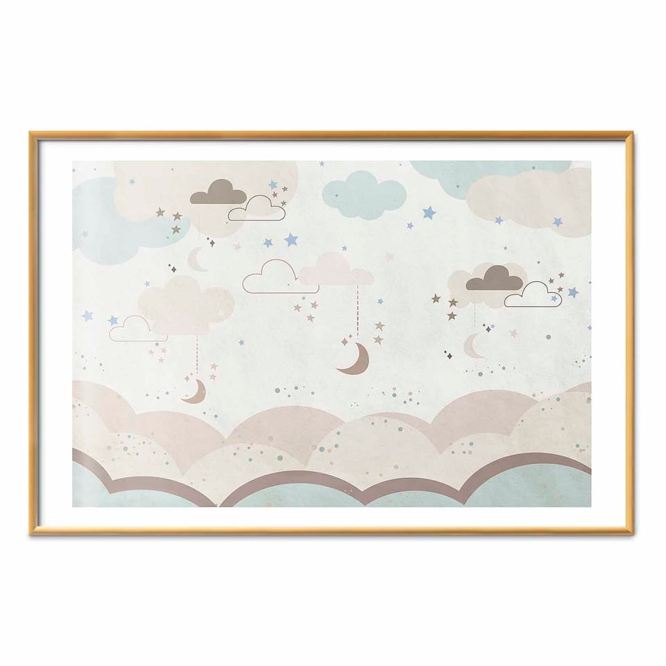 Plakat - Bajkowa noc rozmiar 90x60, wykończenie Rama złota z marginesem