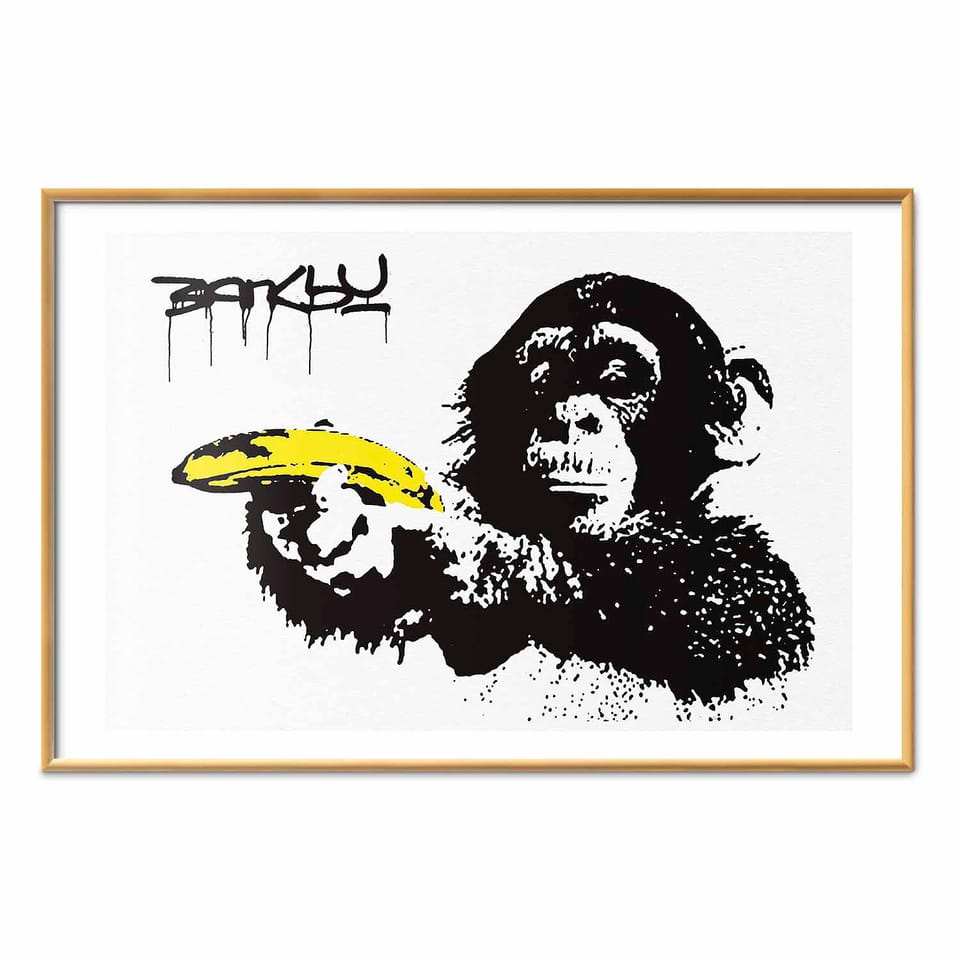 Plakat - Bananowy pistolet rozmiar 60x40, wykończenie Rama złota z marginesem