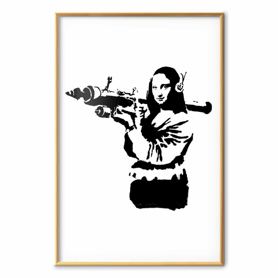 Plakat - Banksy Mona Lisa with Rocket Launcher rozmiar 40x60, wykończenie Rama złota