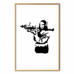 Plakat - Banksy Mona Lisa with Rocket Launcher rozmiar 40x60, wykończenie Rama złota z marginesem