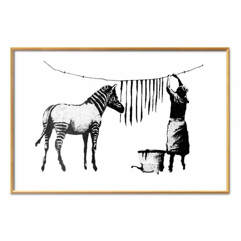 Plakat - Banksy: Pranie zebry rozmiar 30x21, wykończenie Rama złota