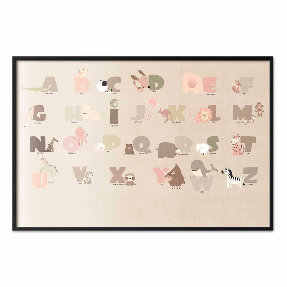 Plakat - Beżowe abecadło rozmiar 60x40, wykończenie Rama czarna