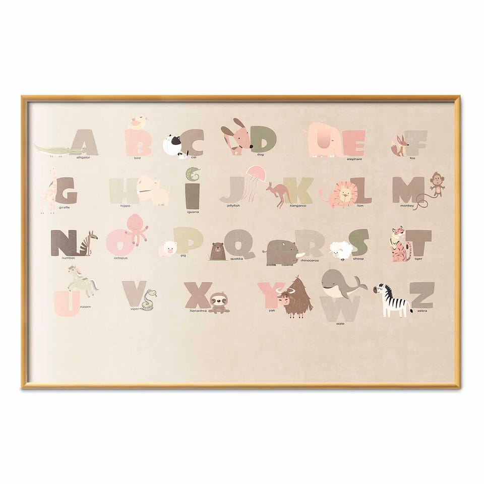Plakat - Beżowe abecadło rozmiar 60x40, wykończenie Rama złota