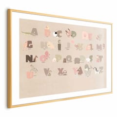 Plakat - Beżowe abecadło rozmiar 60x40, wykończenie Rama złota z marginesem