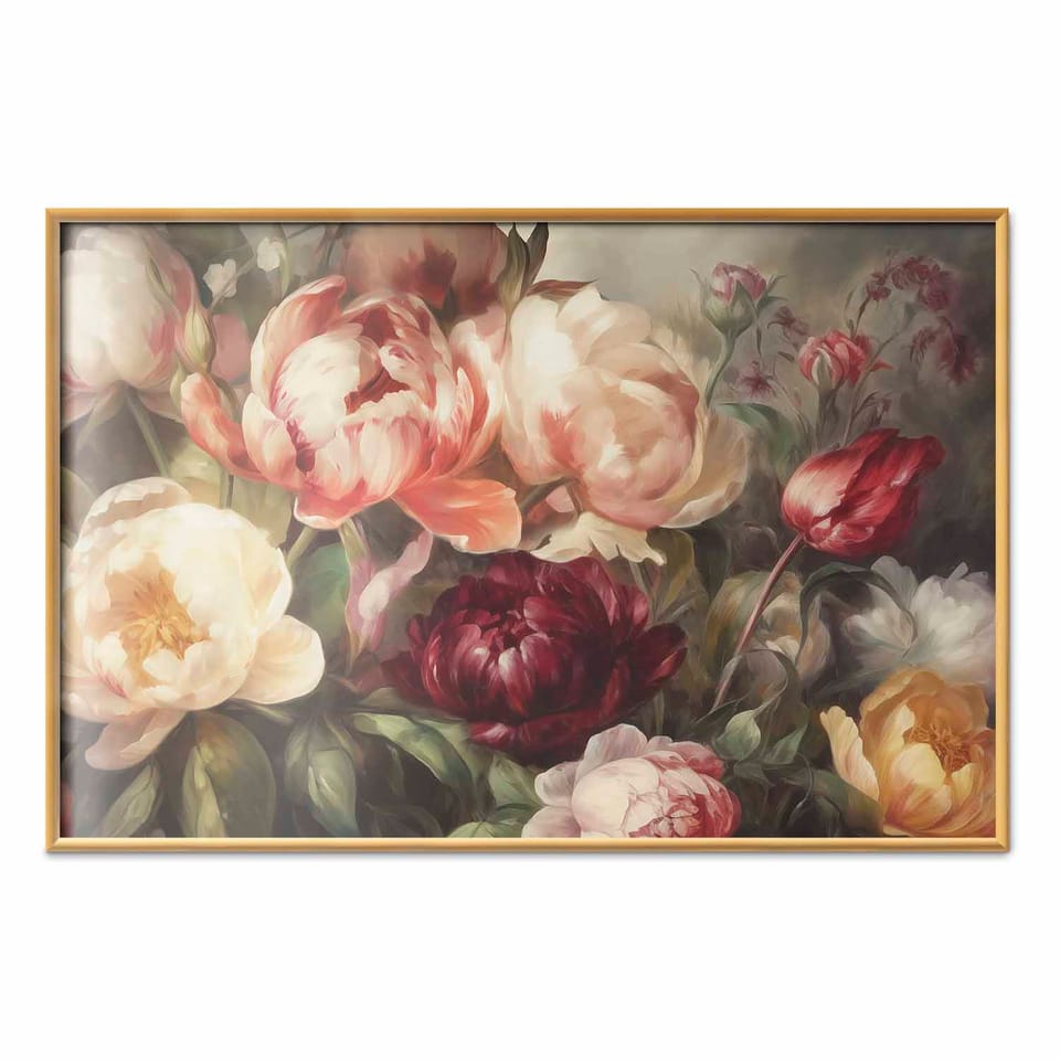 Plakat - Charyzmatyczne piwonie rozmiar 30x21, wykończenie Rama złota