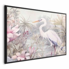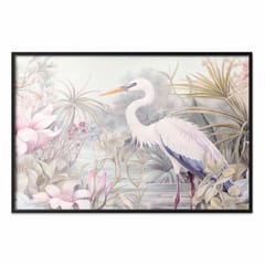 Plakat - Czapla brodząca w stawie - ilustracja w jasnej kolorystyce rozmiar 90x60, wykończenie Rama czarna