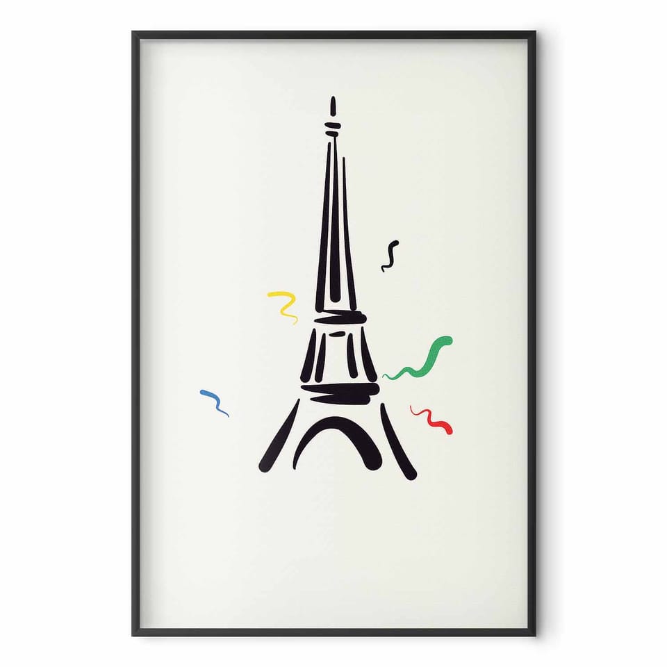 Plakat - Czarna ilustracja wieży Eiffla na jasnym tle rozmiar 21x30, wykończenie Rama czarna