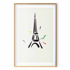 Plakat - Czarna ilustracja wieży Eiffla na jasnym tle rozmiar 60x90, wykończenie Rama złota z marginesem
