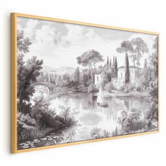 Plakat - Czarno-biały pejzaż vintage ze stawem rozmiar 90x60, wykończenie Rama złota
