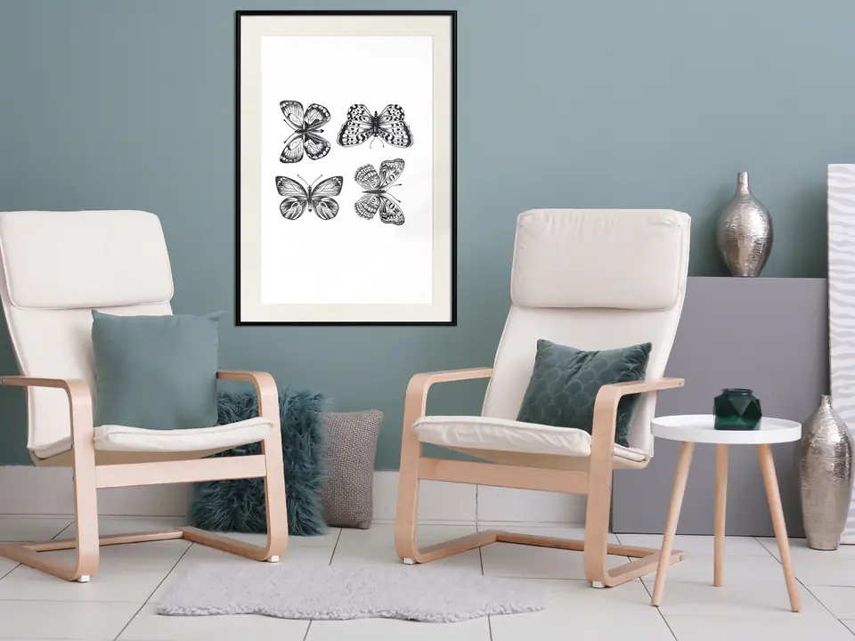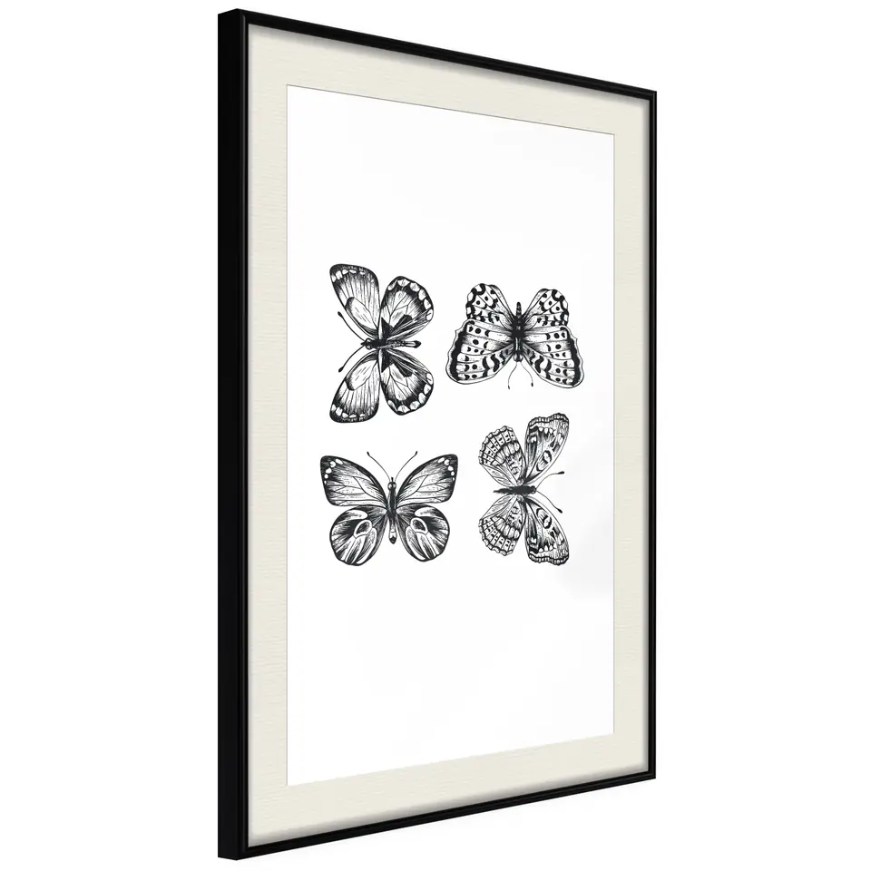 Plakat - Cztery motyle [Poster] rozmiar 30x45, wykończenie Rama czarna z passe-partout