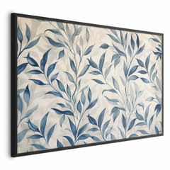Plakat - Delikatny motyw botaniczny z niebieskimi listkami rozmiar 30x21, wykończenie Rama czarna