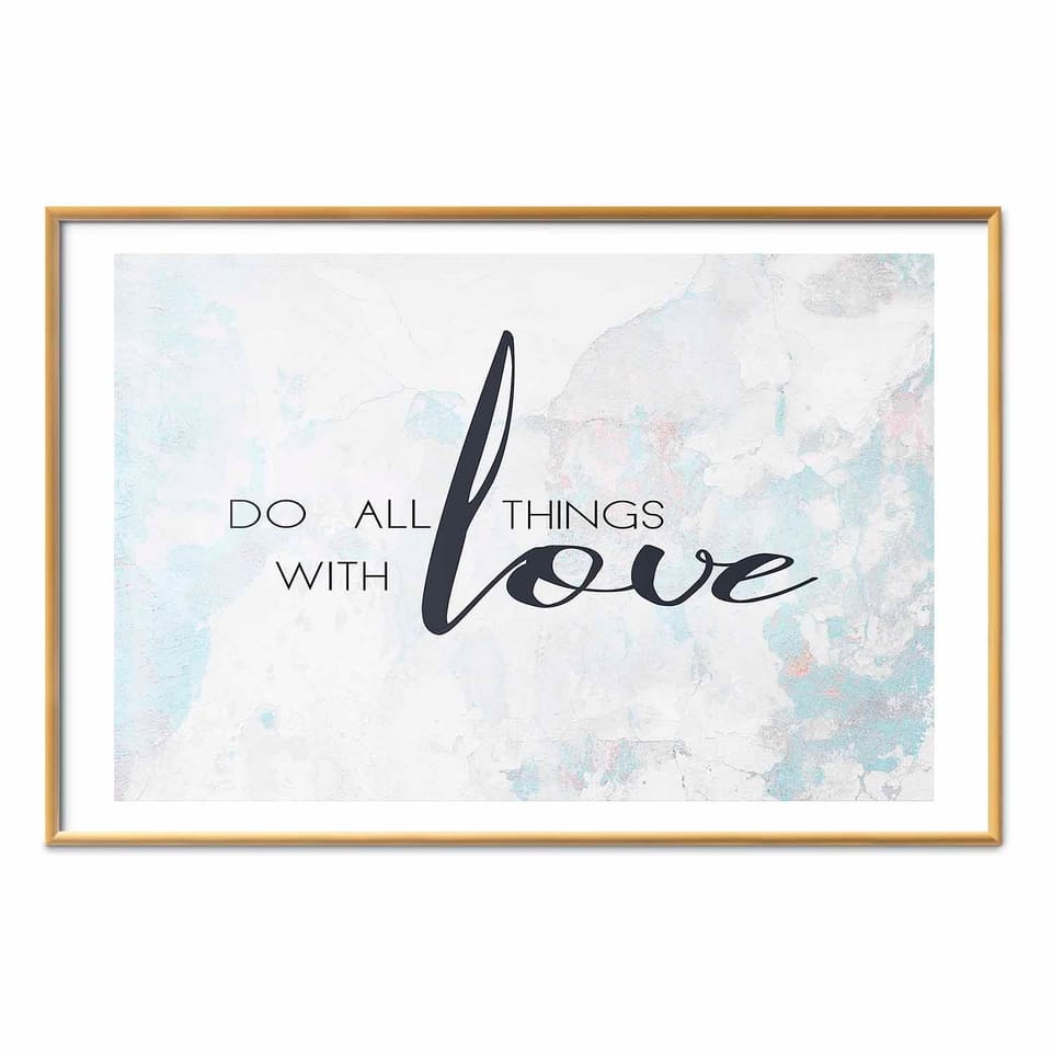 Plakat - Do all things with love rozmiar 90x60, wykończenie Rama złota z marginesem