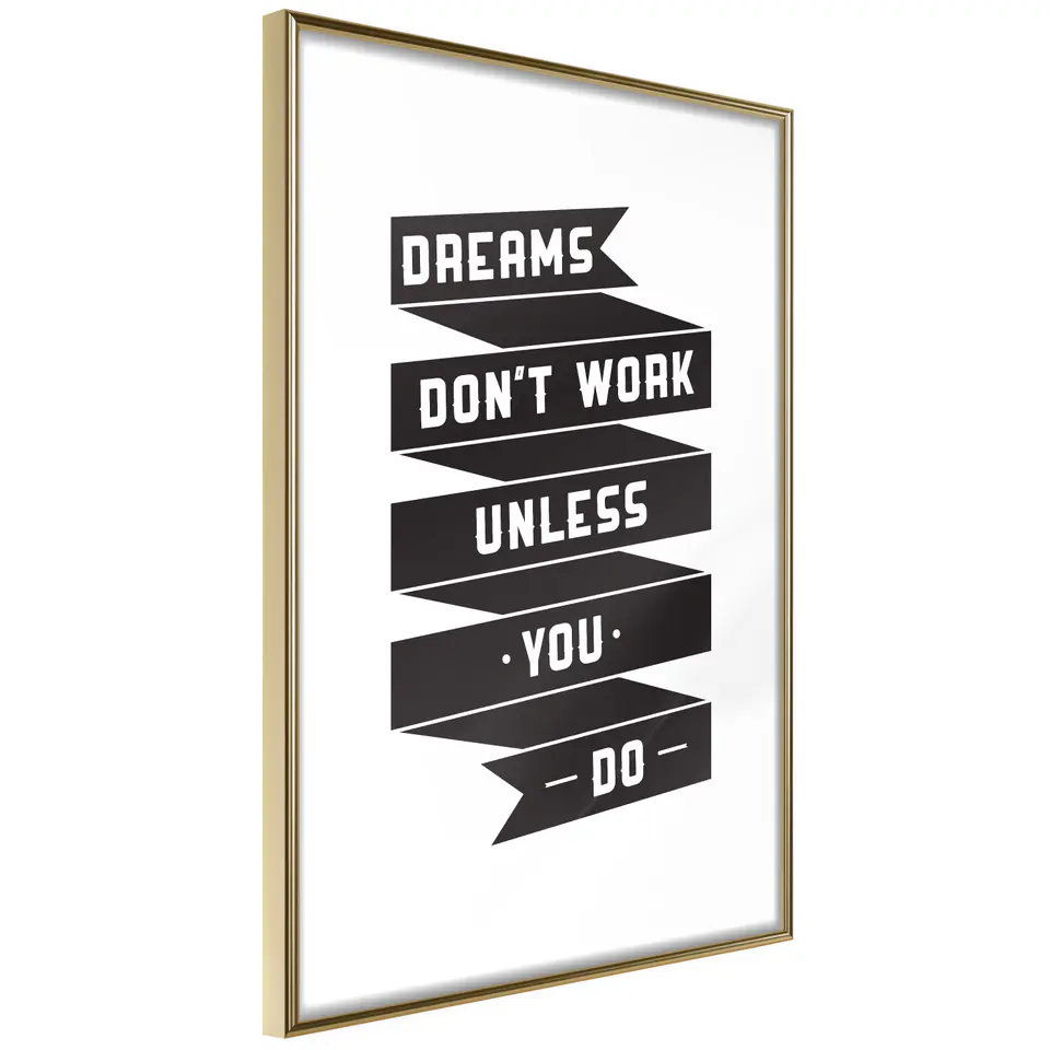 Wysokiej jakości materiały Plakat "Plakat - Dreams don't work [Poster]" jest drukowany w technologii HD na najwyższej jakości papierze o gramaturze 170 g/m2, idealnie odwzorowującym kolory. Zastosowany druk jest odporny na promieniowanie UV, dzięki czemu kolory nie blakną, nawet przy długiej ekspozycji na światło słoneczne. Zarówno sam plakat, jak i rama, są wykonane z bezpiecznych i bezwonnych materiałów, dlatego doskonale nadają się do powieszenia w każdym pomieszczeniu, także w sypialni i pokoju Twojego dziecka.