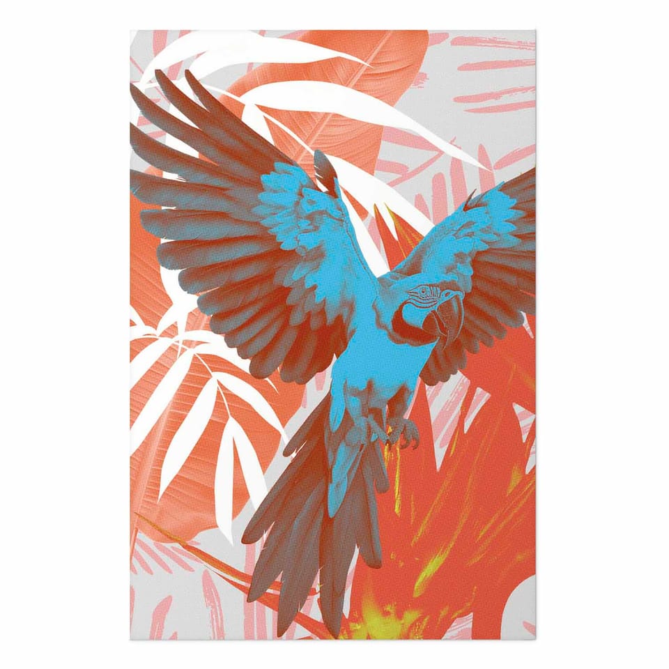Plakat - Egzotyczne skrzydła - Papuga wśród abstrakcyjnych wzorów liści rozmiar 40x60, wykończenie Bez ramy