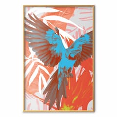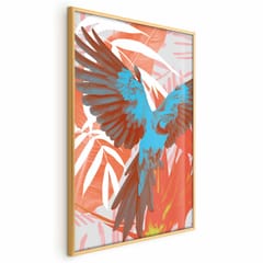 Plakat - Egzotyczne skrzydła - Papuga wśród abstrakcyjnych wzorów liści rozmiar 60x90, wykończenie Rama złota