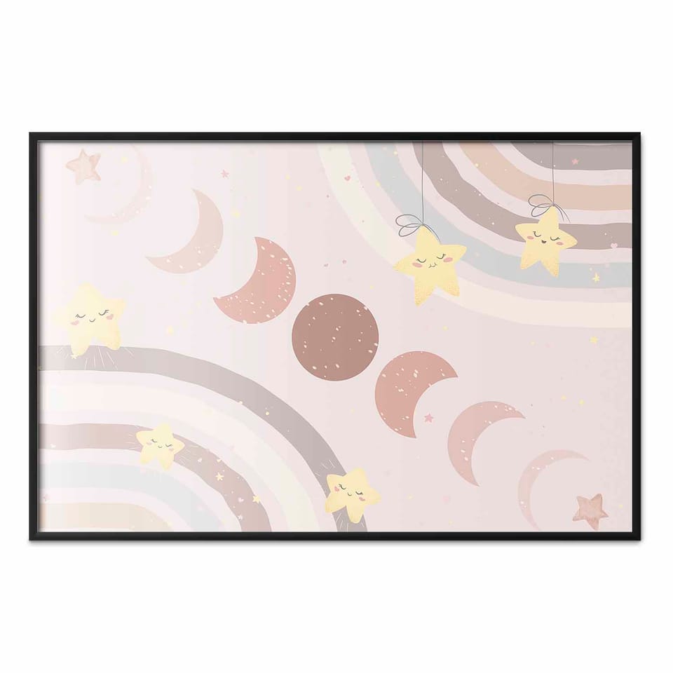Plakat - Fazy księżyca z tęczą rozmiar 90x60, wykończenie Rama czarna