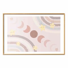 Plakat - Fazy księżyca z tęczą rozmiar 90x60, wykończenie Rama złota z marginesem