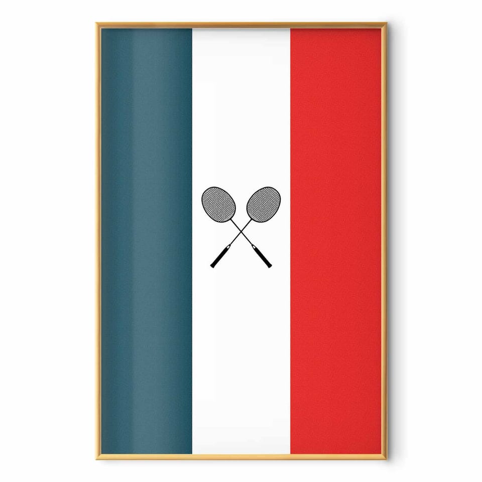 Plakat - Flagi Francji i czarne paletki do badmintona rozmiar 21x30, wykończenie Rama złota