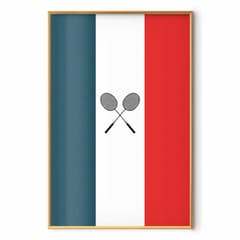 Plakat - Flagi Francji i czarne paletki do badmintona rozmiar 29.7x42, wykończenie Rama złota