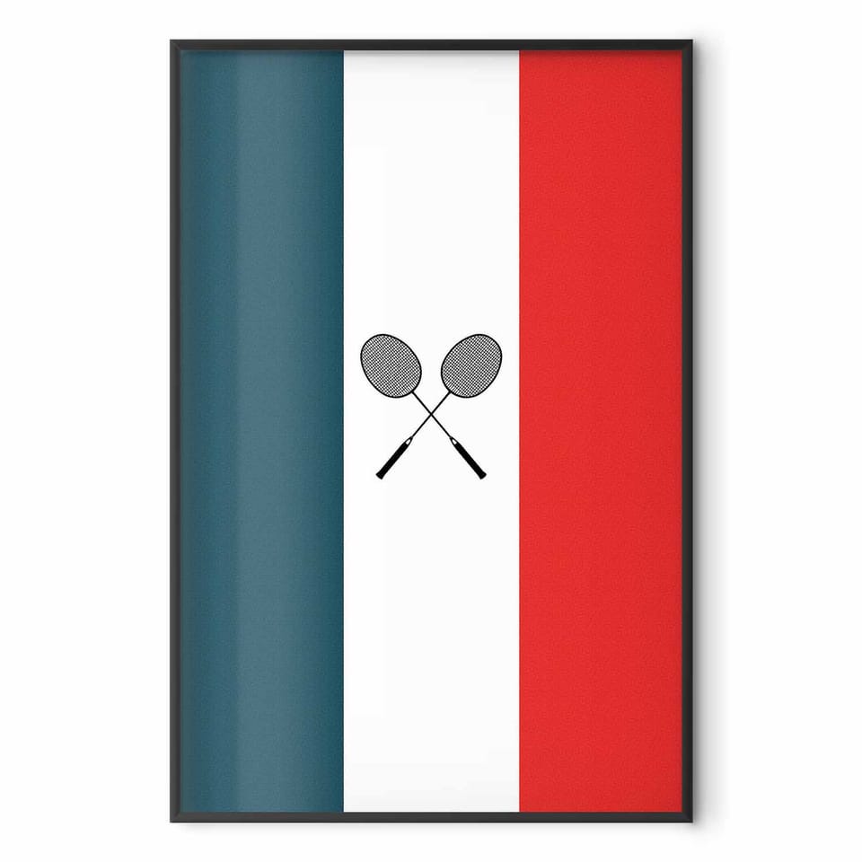 Plakat - Flagi Francji i czarne paletki do badmintona rozmiar 60x90, wykończenie Rama czarna