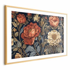 Plakat - Gobelinowe wielkie kwiaty w stylu retro rozmiar 60x40, wykończenie Rama złota z marginesem