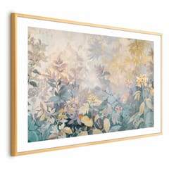 Plakat - Gobelinowy wzór w kolorowe kwiaty rozmiar 60x40, wykończenie Rama złota z marginesem