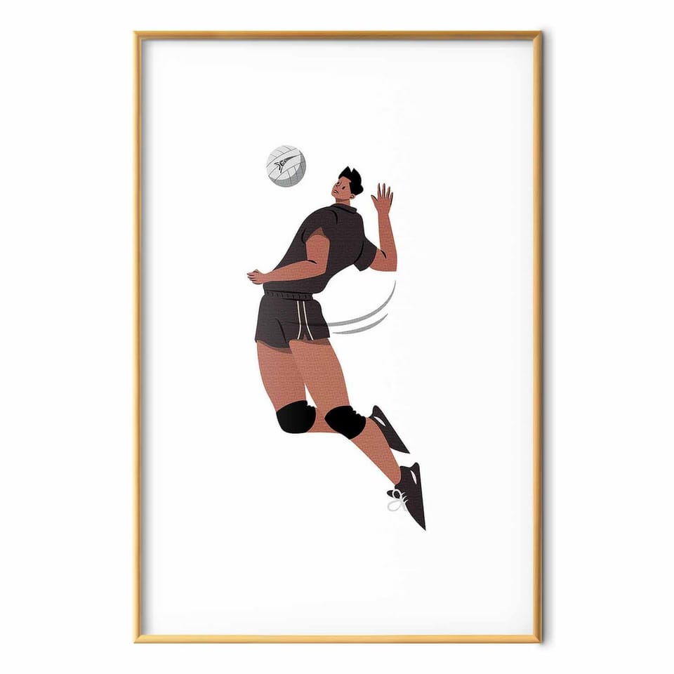 Plakat - Gracz piłki siatkowej na jasnym tle - ilustracja rozmiar 60x90, wykończenie Rama złota z marginesem