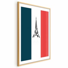 Plakat - Graficzna wieża Eiffla na tle flagi Francji rozmiar 21x30, wykończenie Rama złota z marginesem