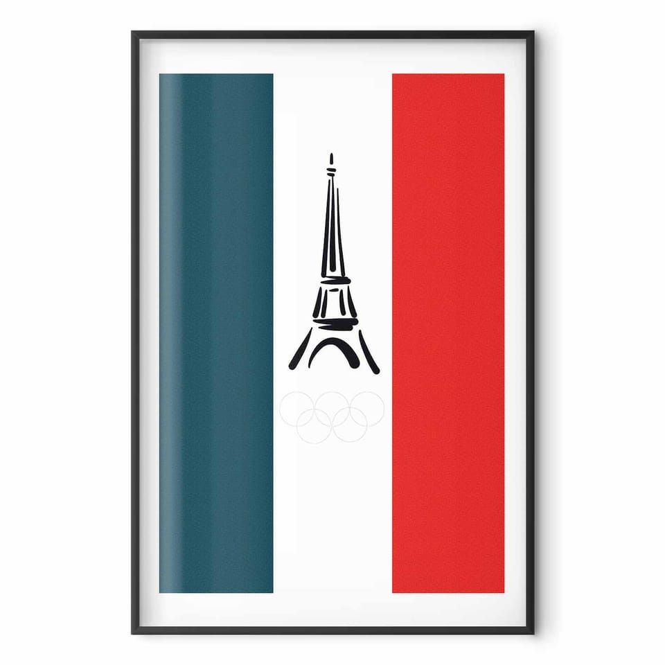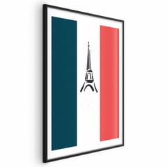Plakat - Graficzna wieża Eiffla na tle flagi Francji rozmiar 29.7x42, wykończenie Rama czarna z marginesem