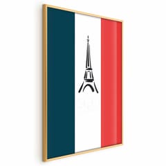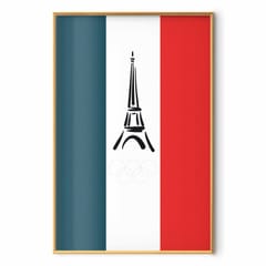 Plakat - Graficzna wieża Eiffla na tle flagi Francji rozmiar 29.7x42, wykończenie Rama złota
