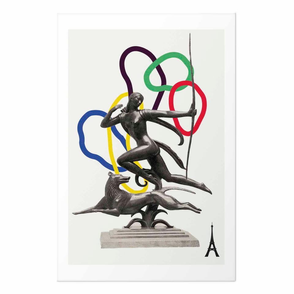 Plakat - Grafika kolaż - kobieta strzelająca z łuku rozmiar 40x60, wykończenie Bez ramy z marginesem
